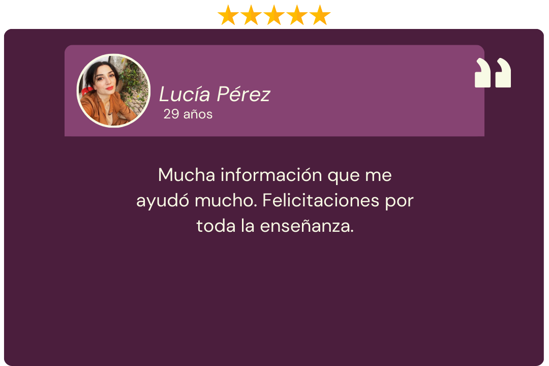✅ 3 bonos exclusivos, con materiales complementarios que amplían tu conocimiento y te preparan para todas las fases de la maternidad.